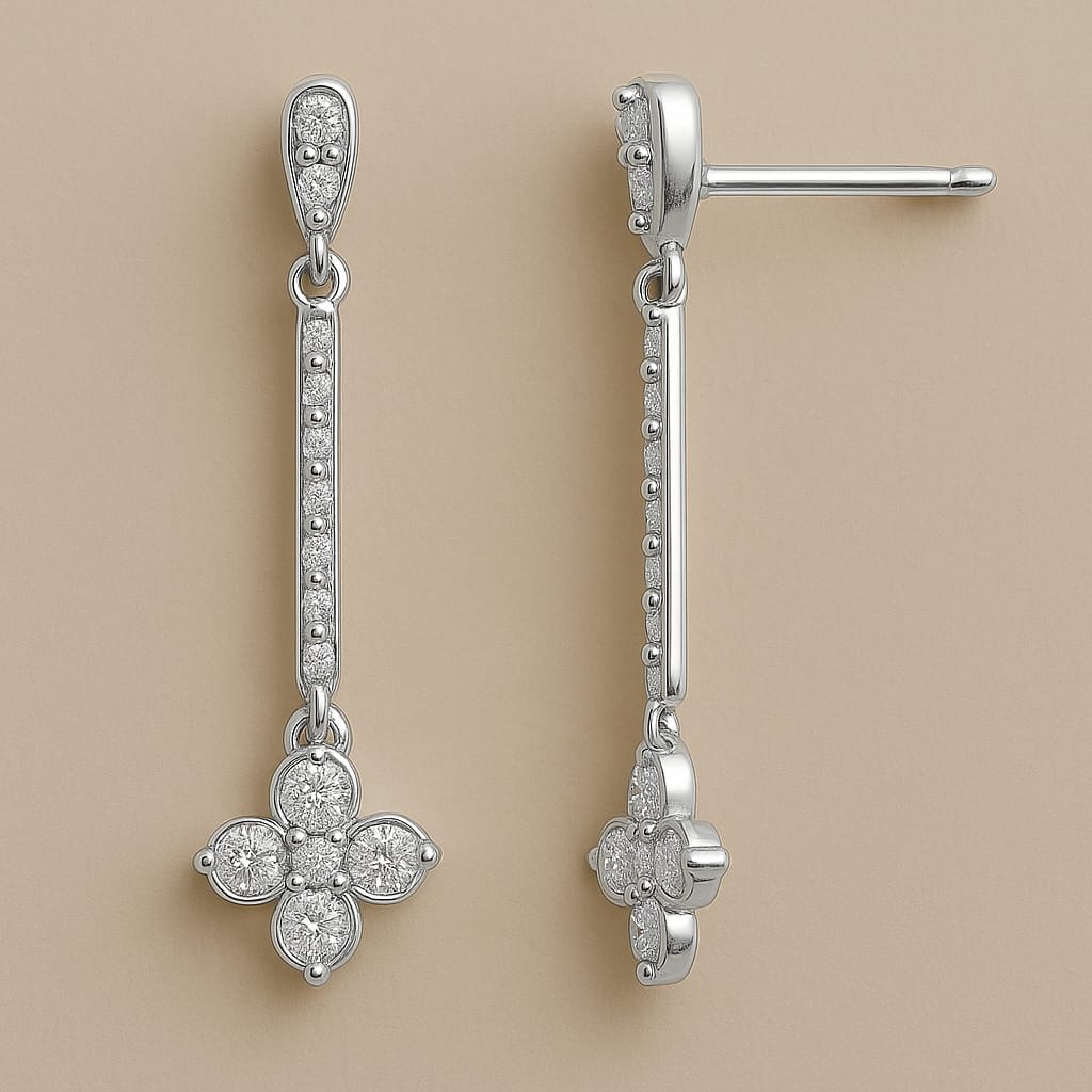 Élégantes et raffinées, ces boucles d’oreilles se distinguent par leur tige ornée de zircones cubiques étincelantes qui mènent vers un pendentif en forme de croix lumineuse. Chaque détail reflète la lumière avec intensité, offrant un éclat sophistiqué à chaque mouvement.