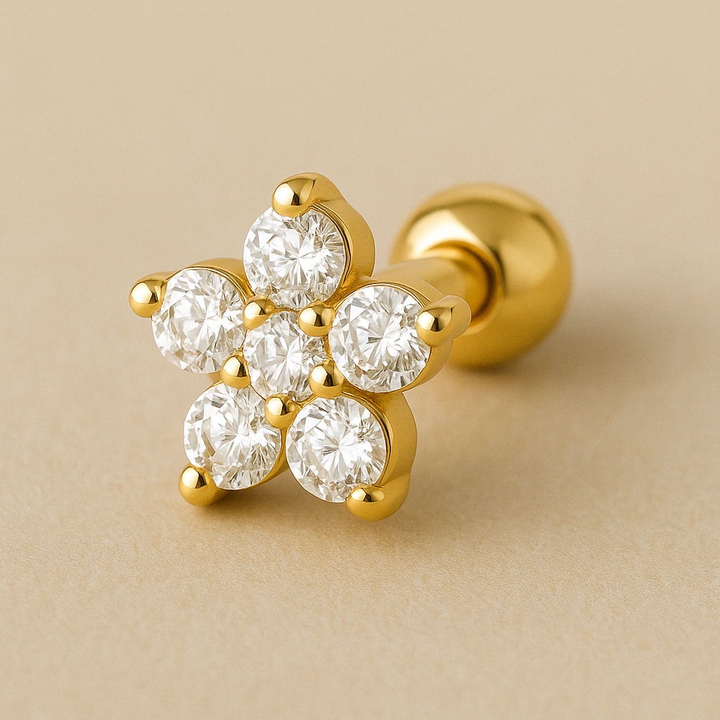 En forme de fleur éclatante, ce piercing réunit six strass scintillants qui renvoient la lumière avec intensité. Réalisé en acier inoxydable 316L, son design raffiné et poétique évoque la délicatesse de la nature et la beauté des détails intemporels.