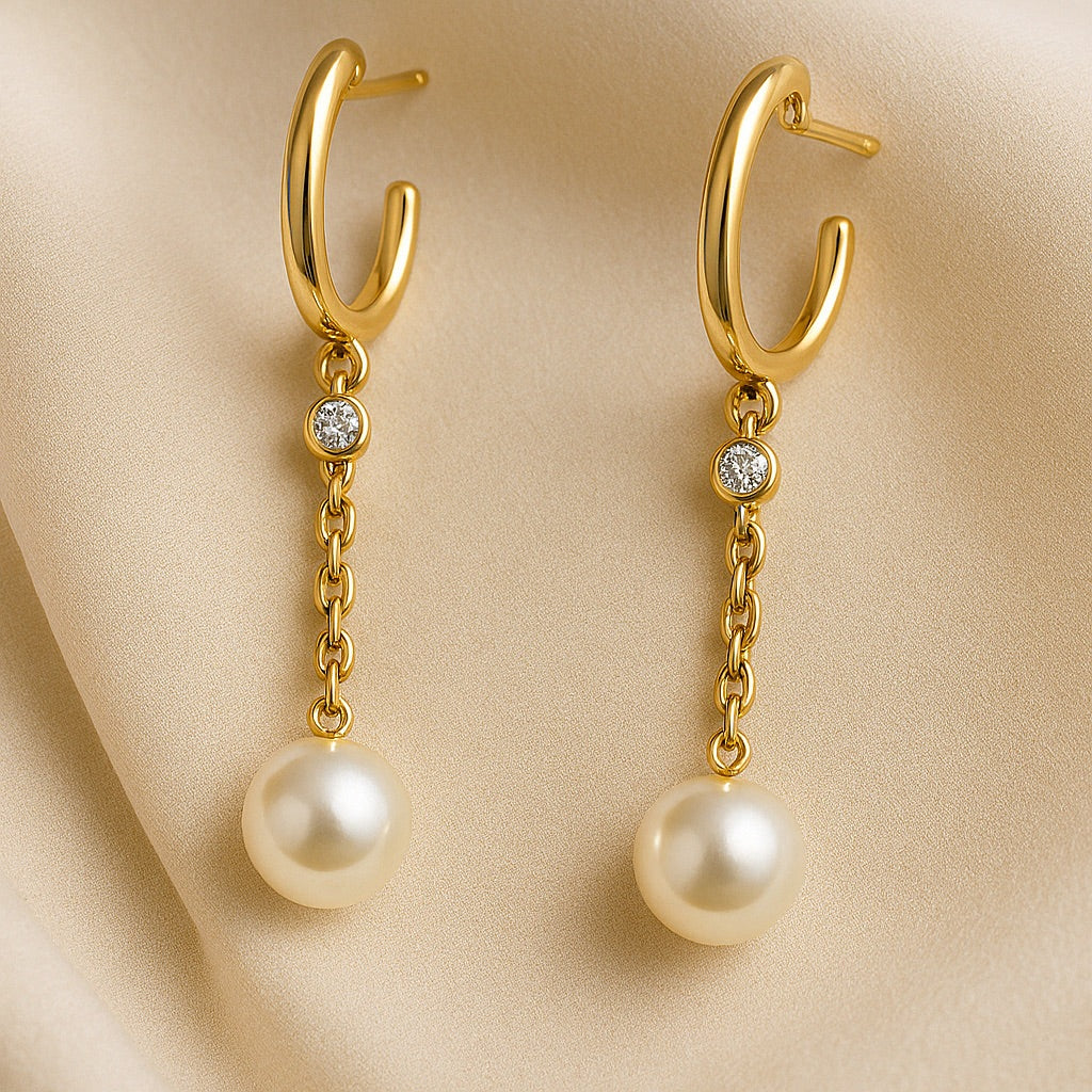 Ces boucles d’oreilles allient élégance moderne et raffinement intemporel. La créole minimaliste en acier inoxydable 316L se prolonge par une fine chaîne ornée d’un strass lumineux, terminée par une perle nacrée qui apporte douceur et sophistication.